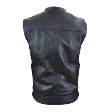 Collarless “Club Rider” Motorcycle leather Vest with zippered lining for patches