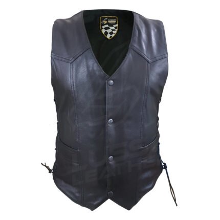 Laced Unisex Motorcycle leather vest with adjustable side laces