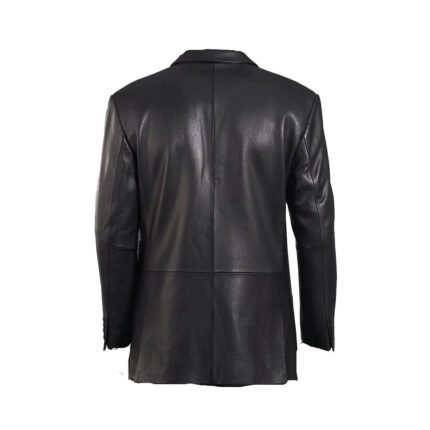 Black leather 3/4 length trench coat