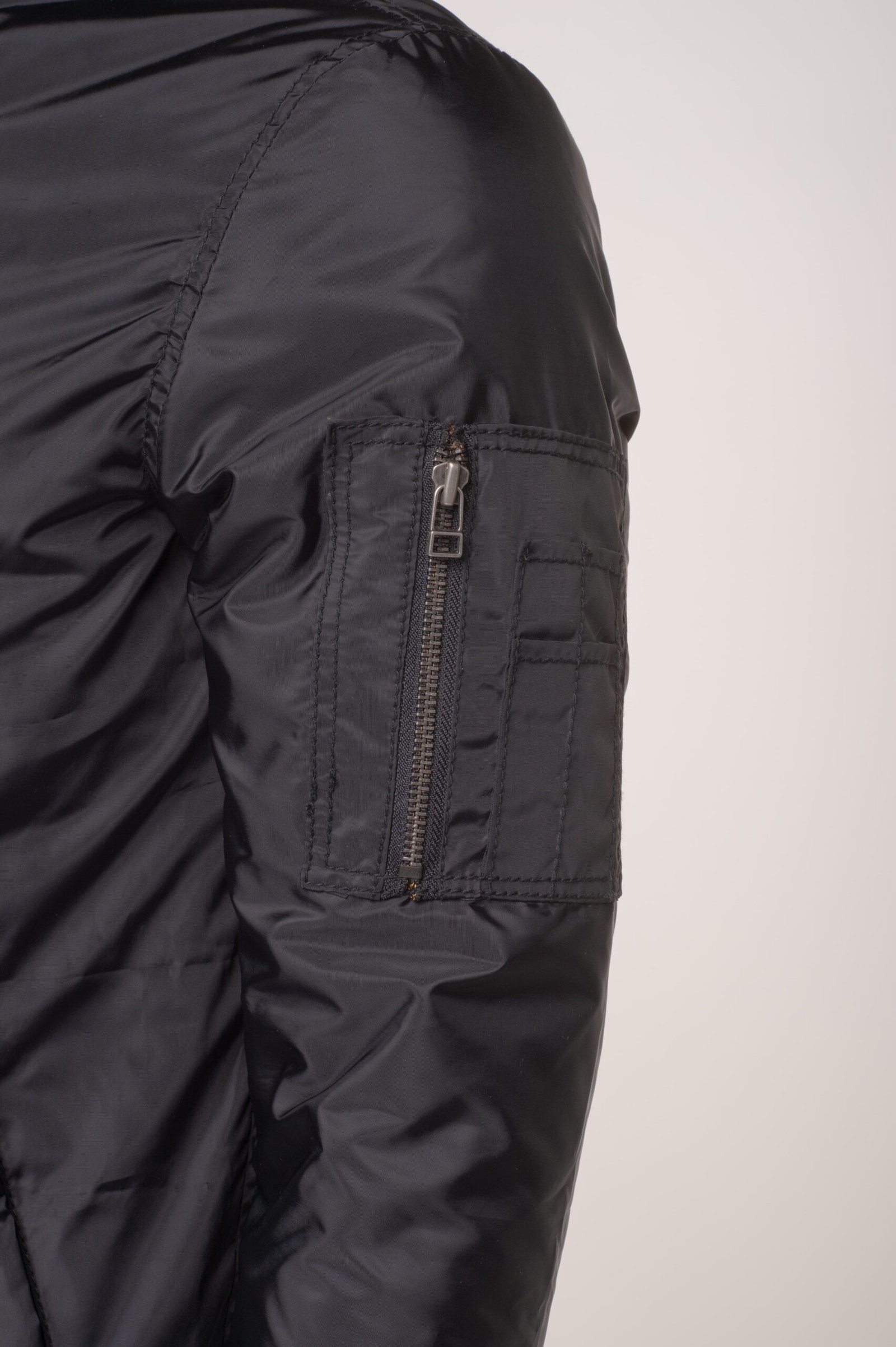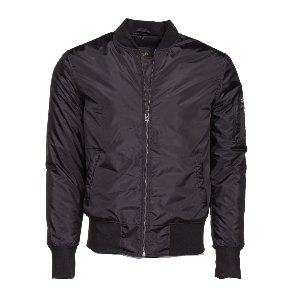 Allan’s black Nylon Flight Jacket with Ribbed Waist